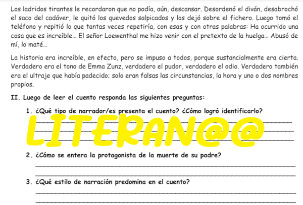 Guía de comprensión lectora y aplicación de contenidos sobre el cuento