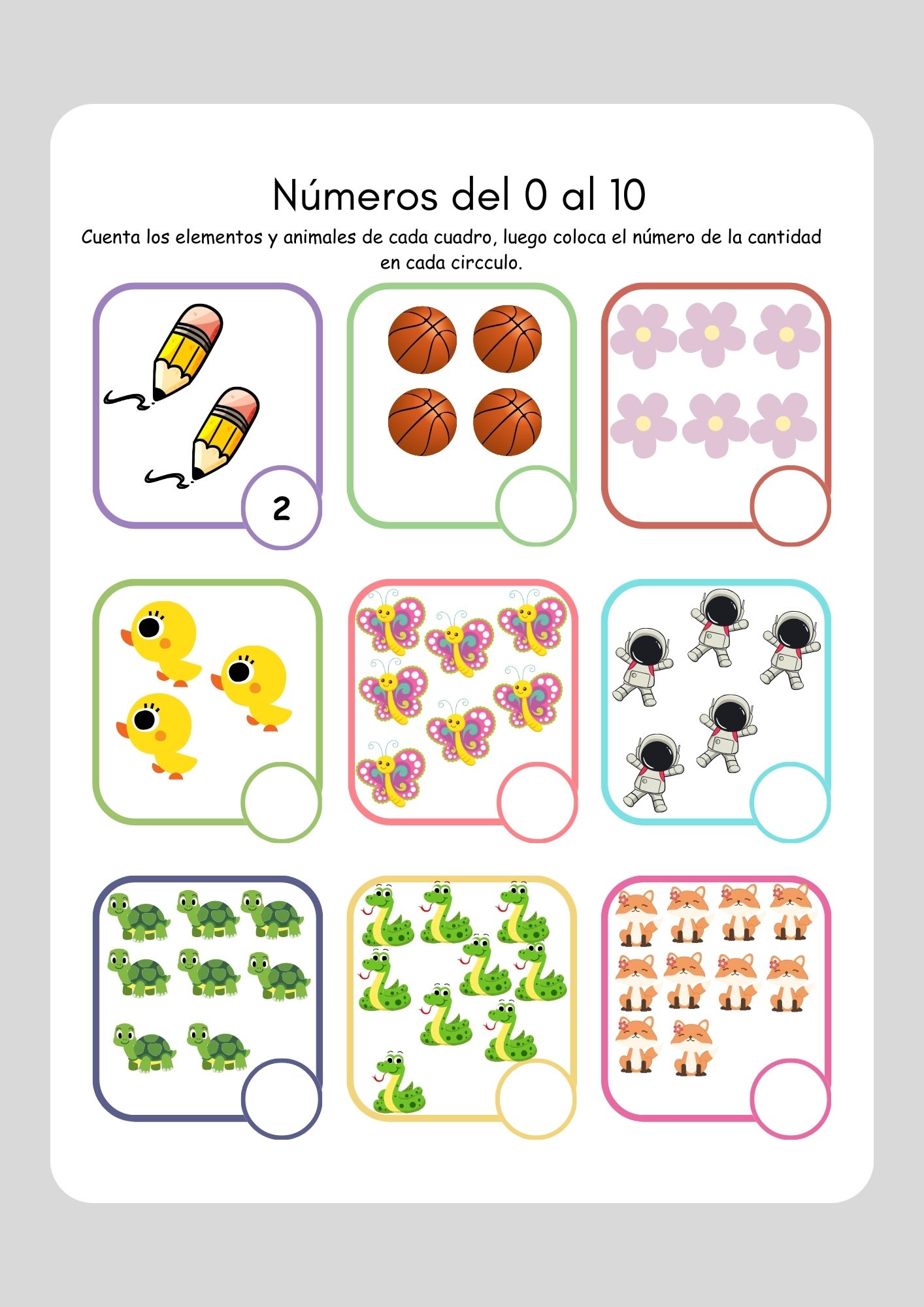 cinco actividades de conteo del 0 al 20