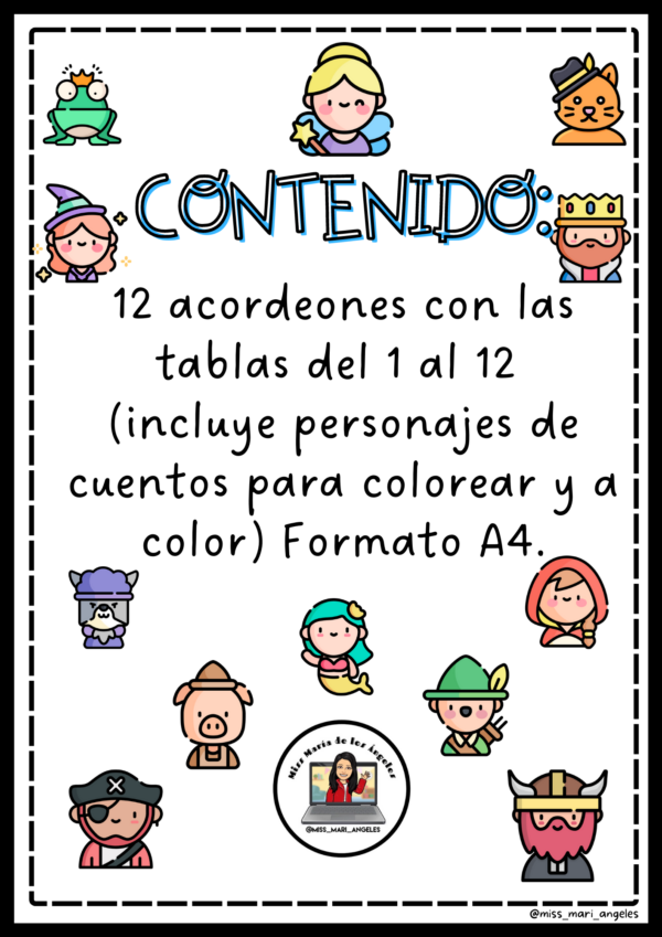 ❤ En este recurso encontrarás las tablas de multiplicar del 1 al 12 que al recortarlas, pintarlas y doblarlas por la línea punteada, darán forma a un acordeón.