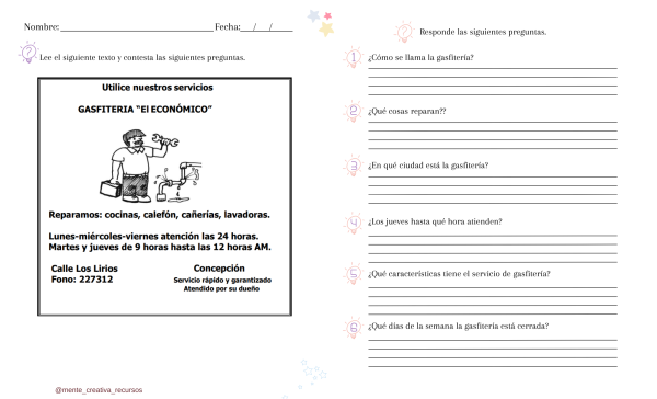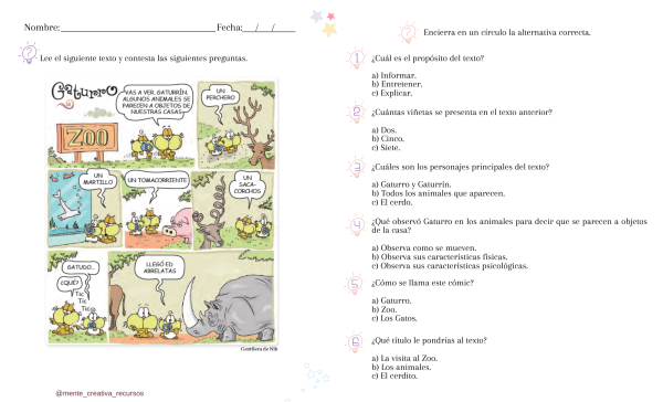 Segundo cuadernillo de Comprensión Lectora, ideal para niños de tercero y cuarto de primaria. Con diversas actividades, y diferentes tipos de textos (Literarios y no literarios). Contiene: