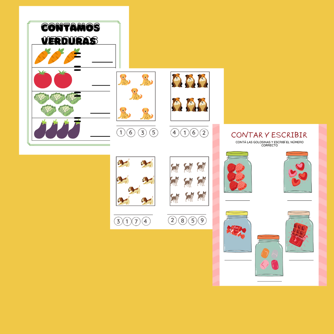 45 páginas con actividades relacionadas con el conteo, el grafismo de los números, nociones de grande y pequeño y cantidades. También flashcards con numeración.