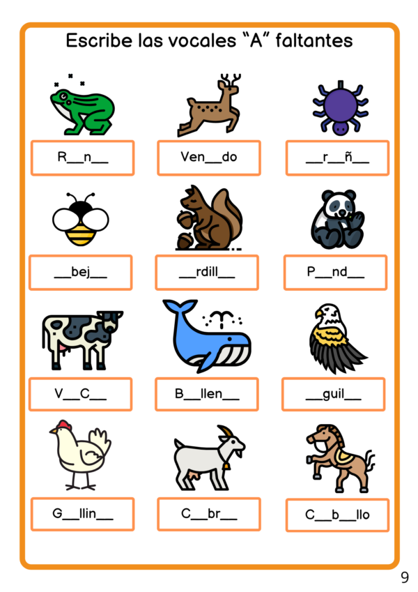 Cada apartado consiste en conocer la vocal en las cuatro formas, realizar la grafía, identificar su sonido inicial y final, completar con las vocales faltantes, dibujar interpretaciones, para culminar con tareas de repaso.