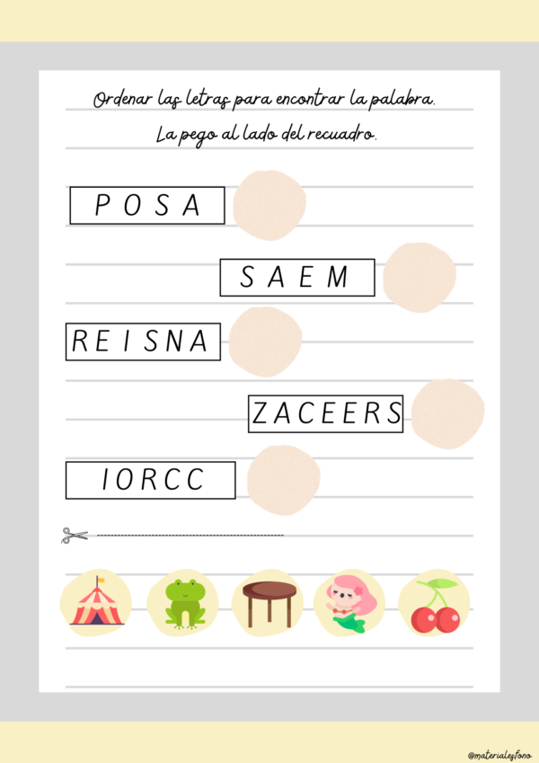 Ordenar las letras para formar una palabra