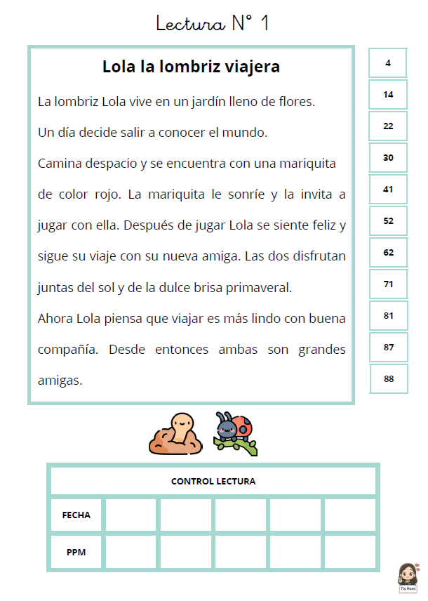 -Cada texto cuenta al final con una tabla para registrar la fecha y las palabras leídas por minuto del estudiante.