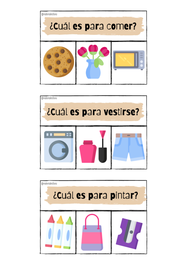 Actividad para trabajar el nivel semántico y la comprensión de preguntas con el encabezador “cuál”.