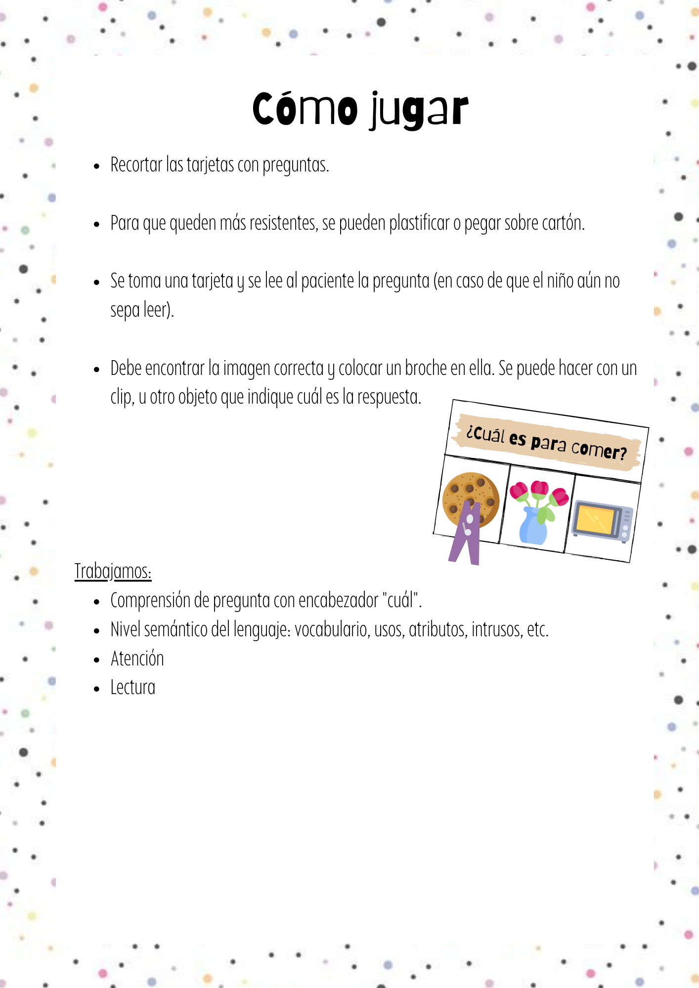 Actividad para trabajar el nivel semántico y la comprensión de preguntas con el encabezador “cuál”.