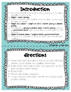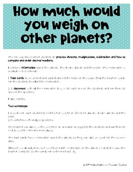 1. A guide for each student to find his/her weight on different planets, dwarf planets and the moon.