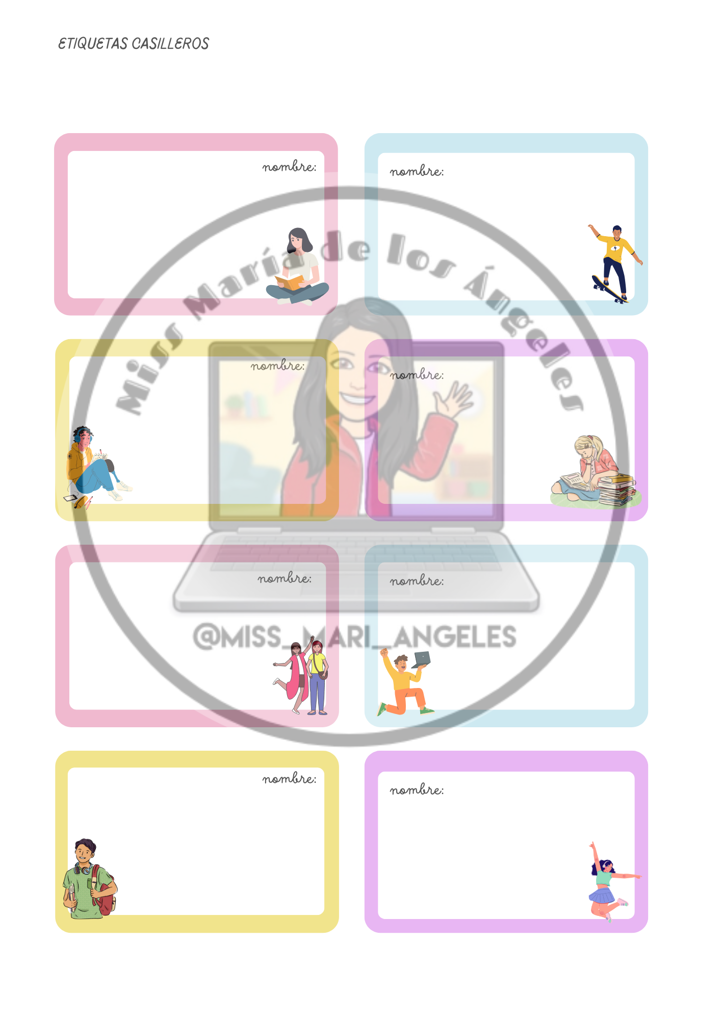 • Set de formas – etiquetas percheros – etiquetas casilleros.