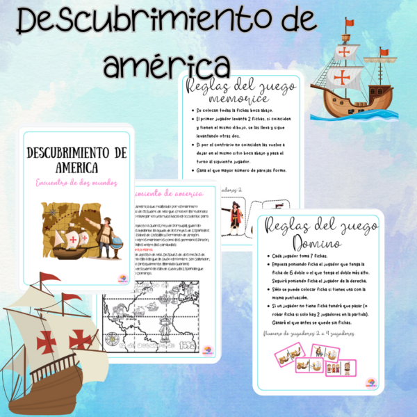 Material en formato pdf con juego y breve reseña del descubrimiento de américa