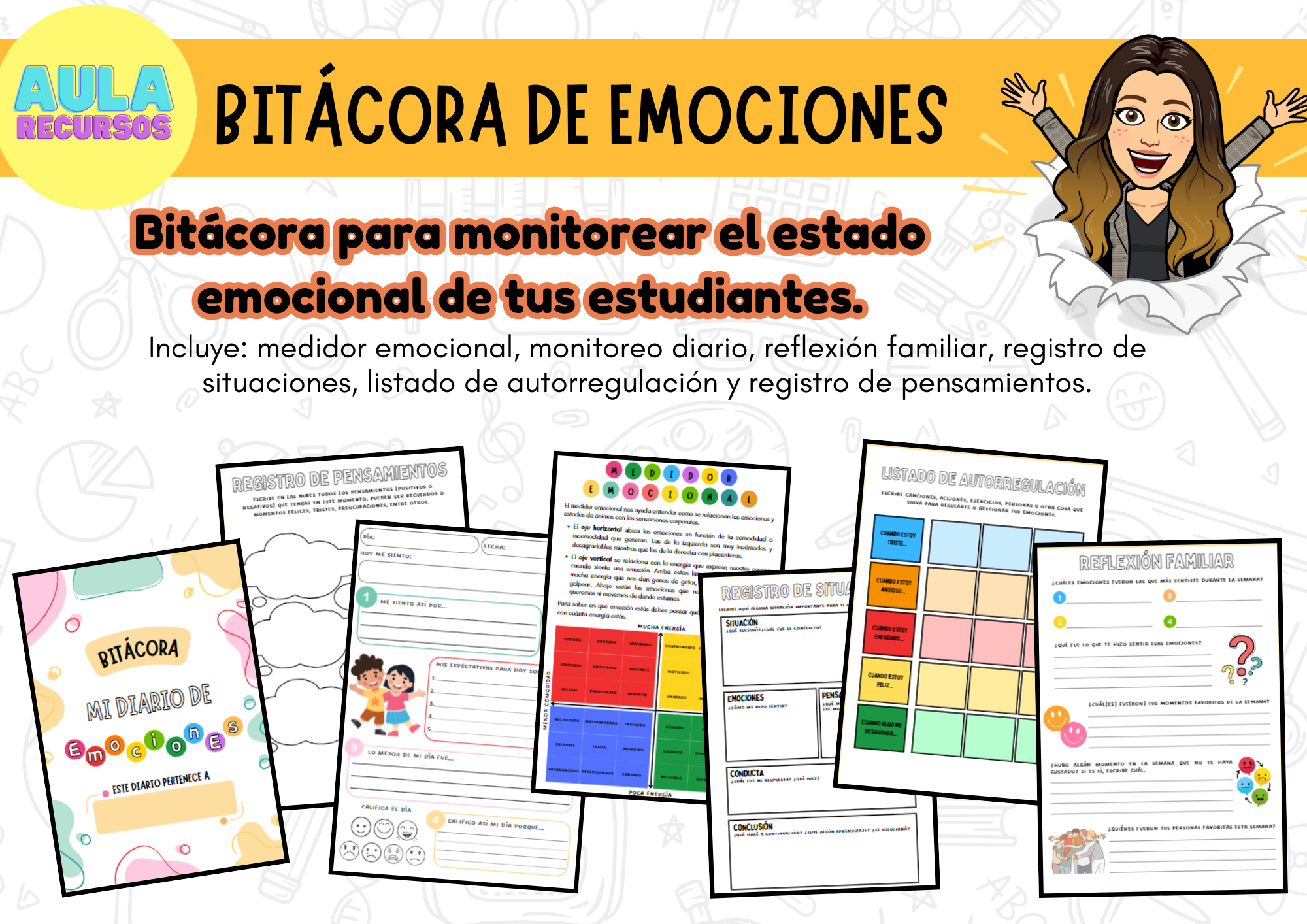 – Medidor emocional, para poder ampliar el vocabulario emocional de tus estudiantes y de esta manera, evitan decir “Bien” automatizada a la pregunta “¿Cómo estás?”.
