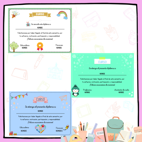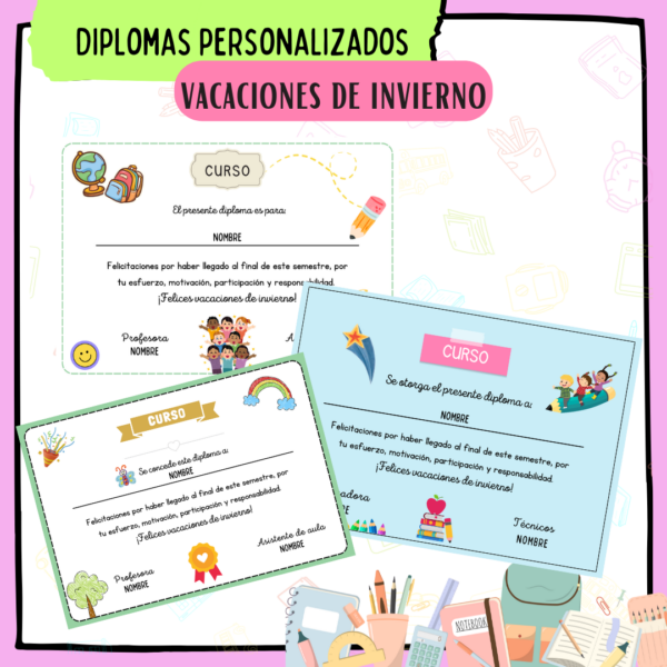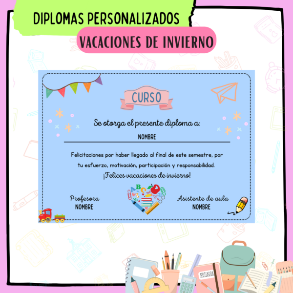 Diplomas PERZONALIZADOS para tu curso en esta despedida de vacaciones de invierno.