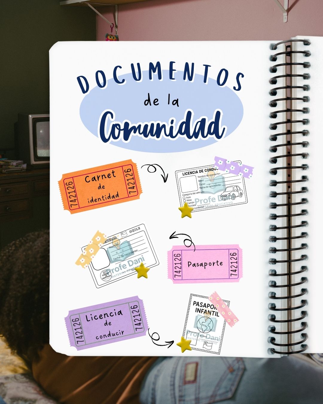 Cada documento posee su parte delantera y trasera con imágenes para pintar y datos que completar, generando instancias lúdicas de juegos.