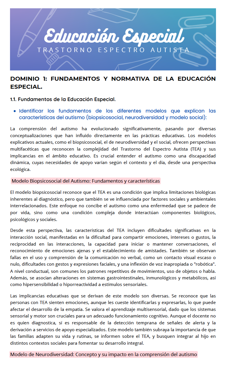 Dossier Especializado para la Evaluación Docente: Trastorno del Espectro Autista (TEA) y Disfasia Severa