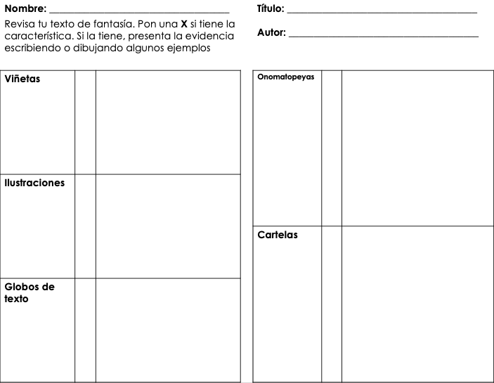 - Actividad para que los estudiantes busquen e identifiquen estos elementos en sus historietas.