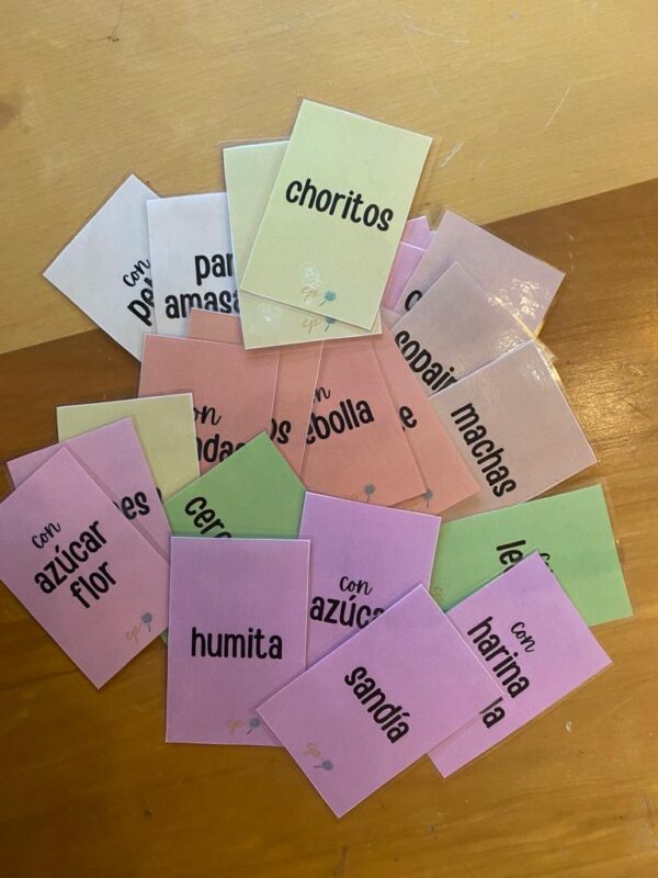 Tarjetas con comidas típicas chilenas para formar parejas de estudiantes de manera rápida y sencilla.