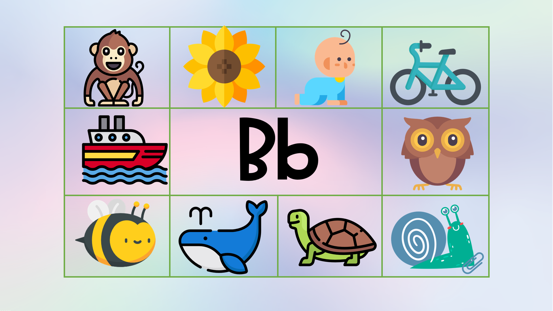 El objetivo de estas tarjetas es que se muestra la consonante y los estudiantes deben encontrar las imagenes que empiecen con esa letra.