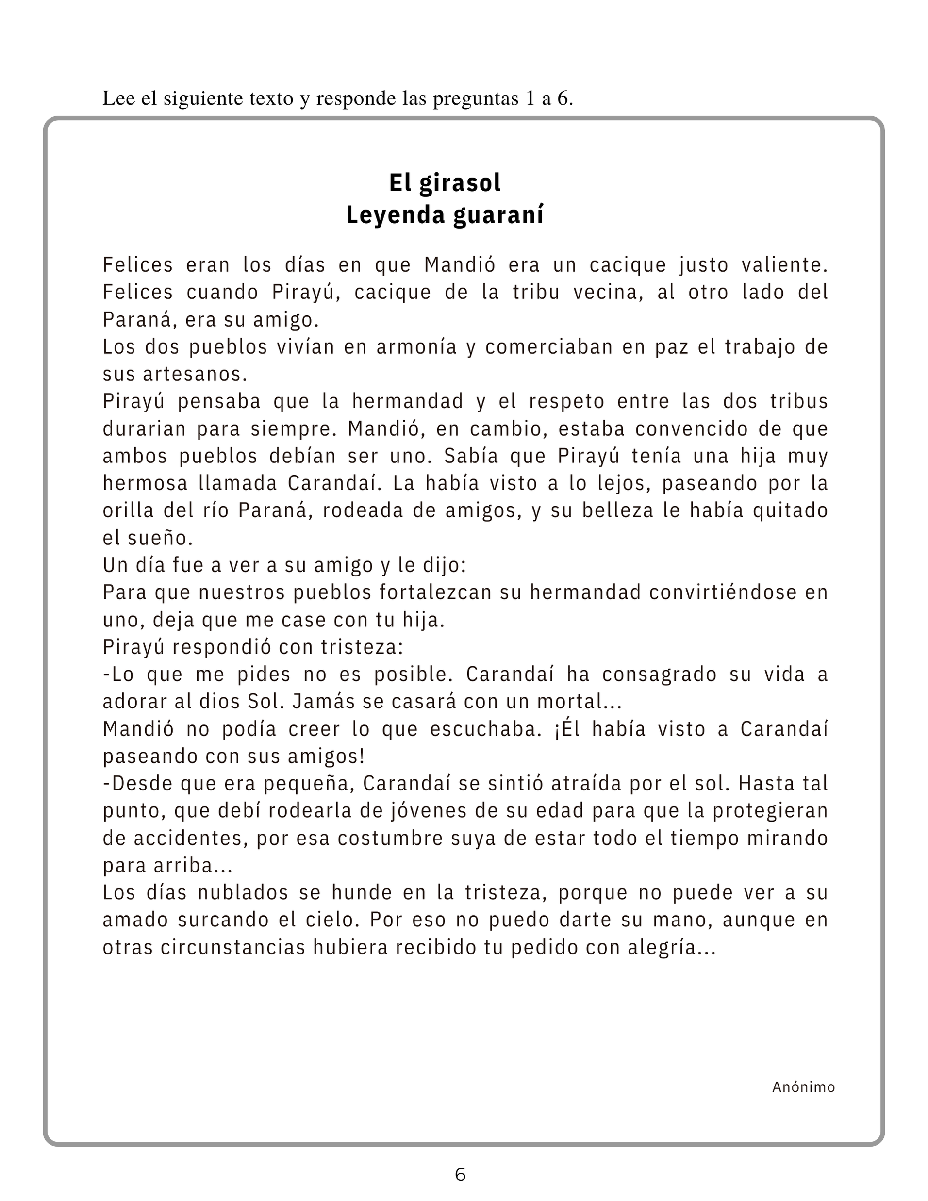 Texto 1 – El girasol – Leyenda guaraní