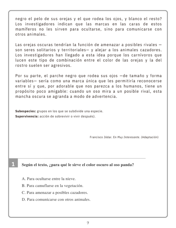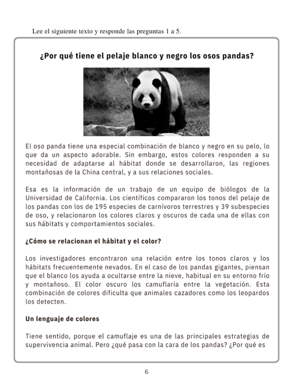 –Texto 1 – ¿Por qué tiene el pelaje blanco y negro los osos pandas? (texto informativo)