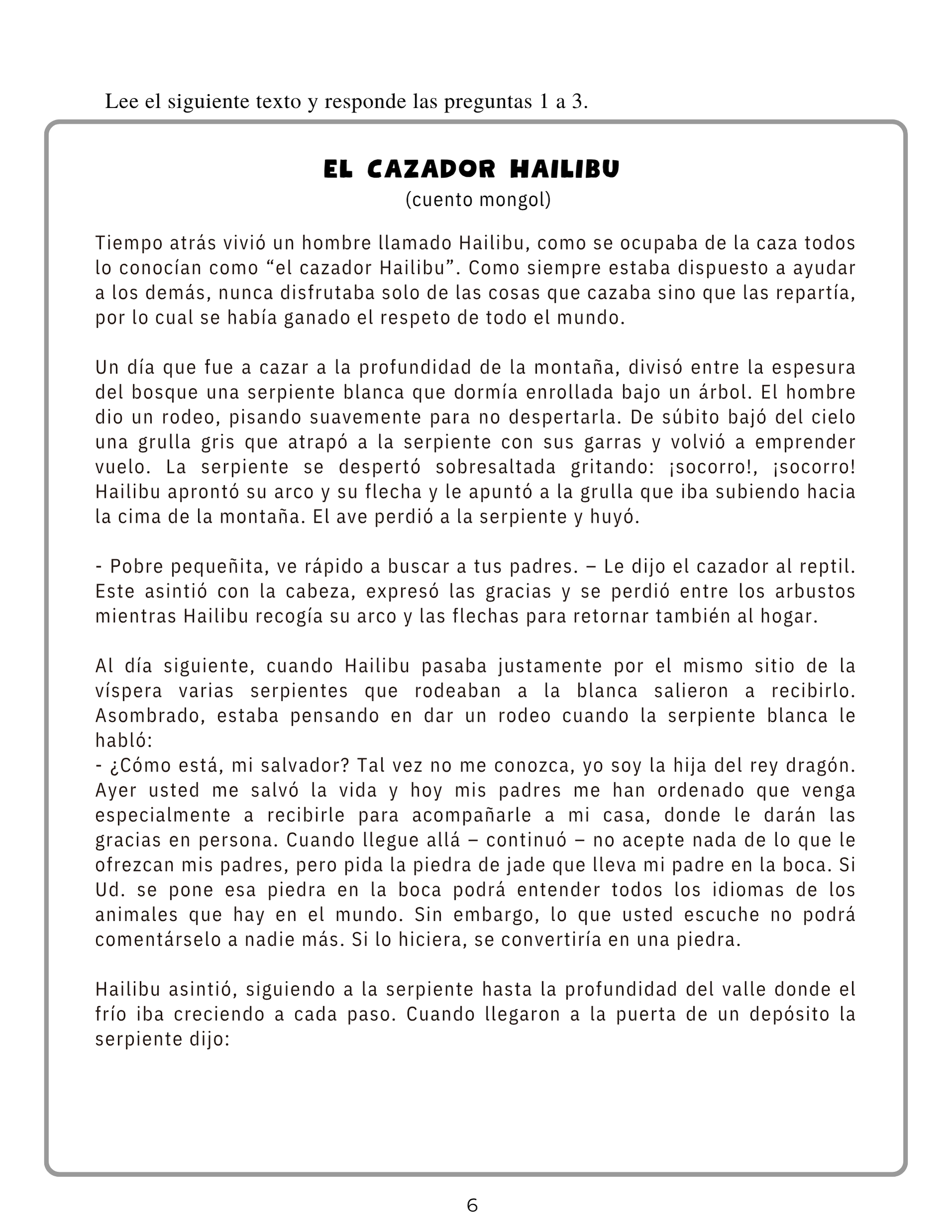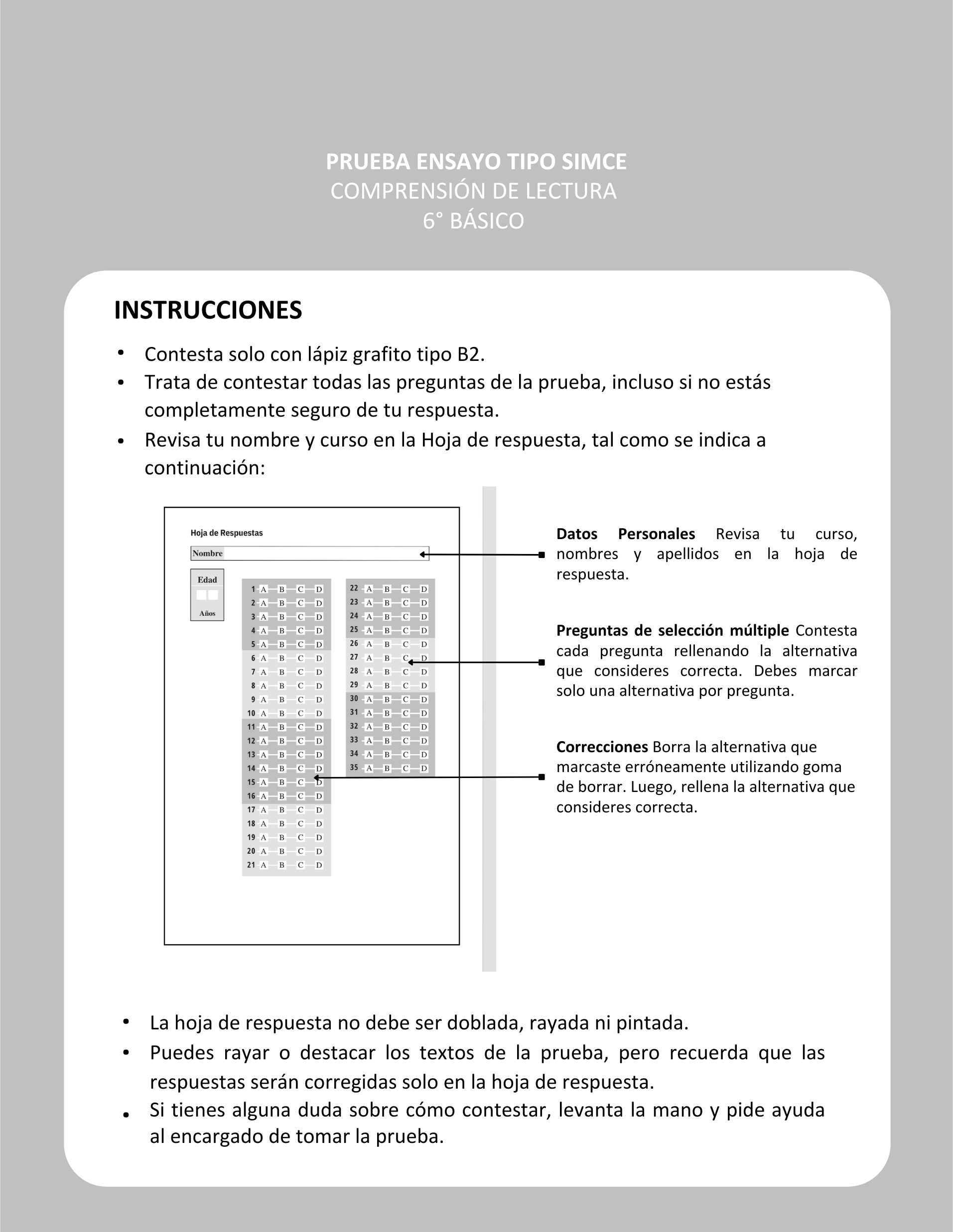 Ensayo SIMCE – Lenguaje 6to básico N° 1