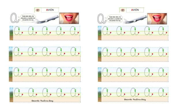Escritura de vocales con apoyo de carriles.
