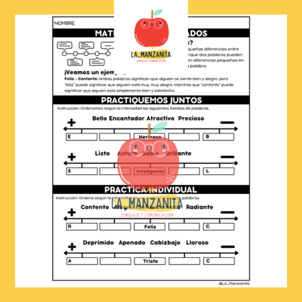 📚Además, nuestras actividades guiarán a tus estudiantes en la exploración de matices sutiles de significado, mejorando así la comprensión y uso del lenguaje. Ideal para aulas y estudios individuales, estos recursos están diseñados para hacer del aprendizaje del vocabulario una experiencia emocionante y enriquecedora.