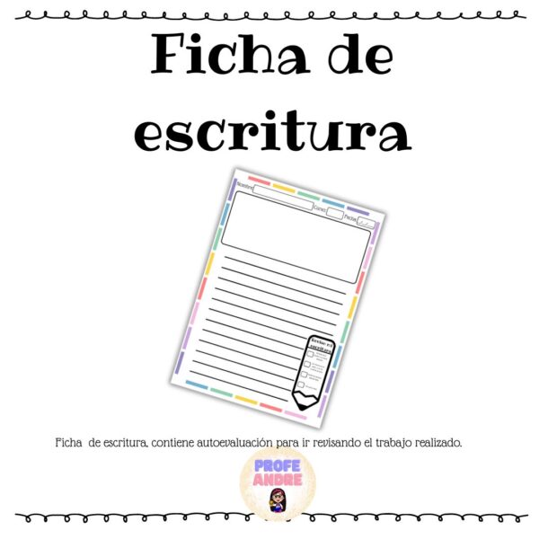 Ficha de escritura, con pauta de autocorrección para guiar el trabajo autónomo, viene en dos tamaños carta y media carta.