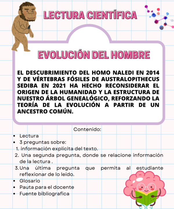 Descubre nuestras fichas de lectura científica diseñadas para facilitar la comprensión y análisis crítico de textos científicos! Cada ficha incluye una lectura cuidadosamente seleccionada y tres preguntas que desafiarán a los estudiantes: una sobre la información explícita del texto, otra que les pide relacionar conceptos y una última que invita a la reflexión profunda sobre lo leído. Además, nuestras fichas vienen con un glosario de términos clave, una pauta detallada para el docente y una fuente bibliográfica confiable. ¡Ideales para potenciar las habilidades lectoras y científicas de tus estudiantes!