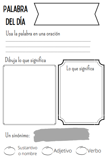 Este es solo un material de apoyo al trabajo de vocabulario en el aula. Su propósito es colaborar en el registro de la palabra que como profe decidas trabajar.