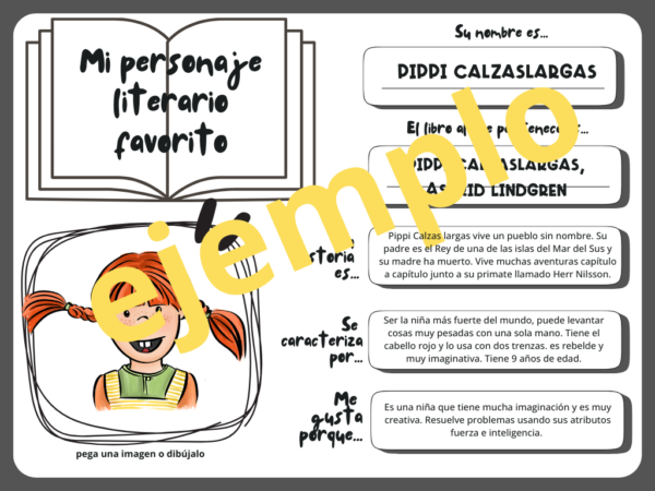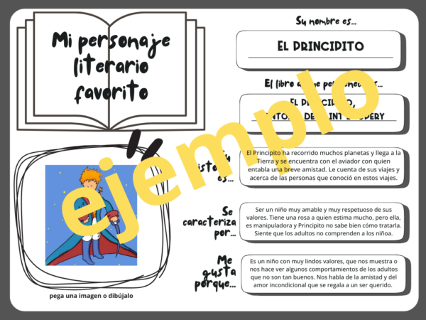Les quiero compartir este recurso para trabajar el análisis de personajes con tus estudiantes. Se trata de una ficha acerca del personaje literario favorito. Los y las estudiantes pueden elegir cuál es su personaje favorito y completar la ficha que puede o no ser expuesta en la sala o en algún panel del colegio.
