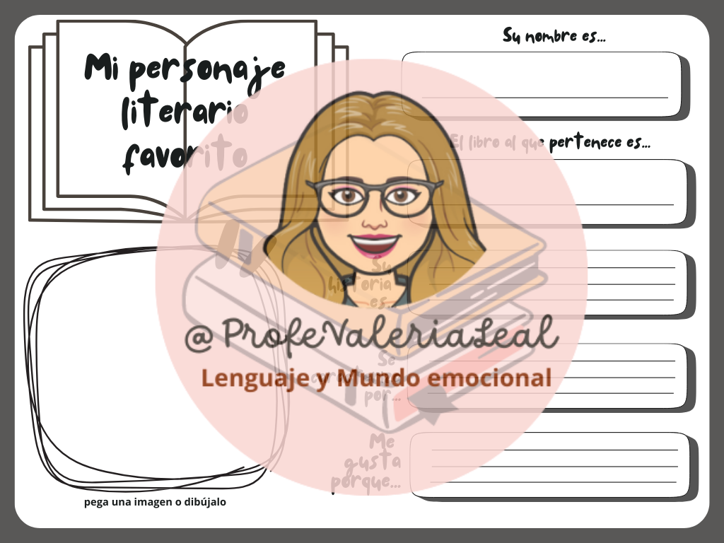 Les quiero compartir este recurso para trabajar el análisis de personajes con tus estudiantes. Se trata de una ficha acerca del personaje literario favorito. Los y las estudiantes pueden elegir cuál es su personaje favorito y completar la ficha que puede o no ser expuesta en la sala o en algún panel del colegio.