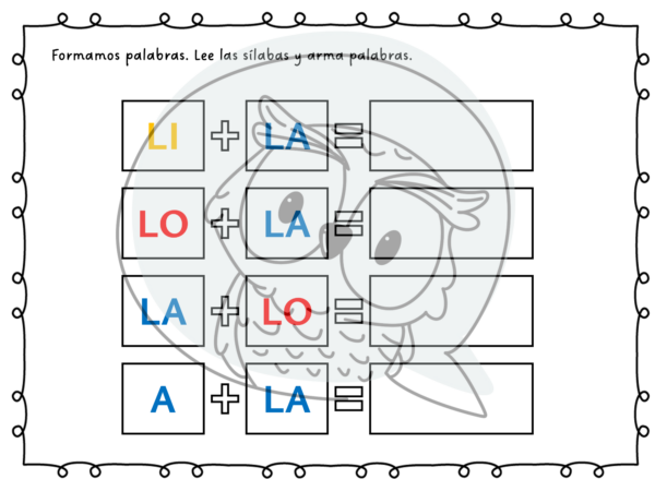 El material se encuentra adaptado para apoyar el reconocimiento de sílabas por medio de colores.