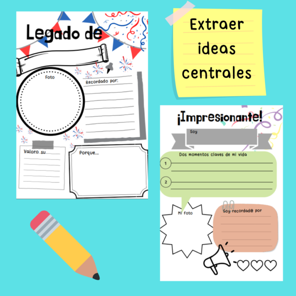 Estas fichas tienen como objetivo ser un apoyo a la lectura de biografías, para dejar registro de esas ideas centrales sobre la vida de una persona. A partir de ello podemos expandir nuestros focos de lectura ya sean para: