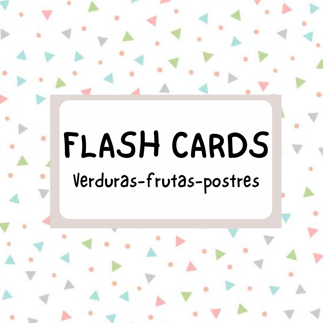 Las flashcards son tarjetas que permiten trabajar sobre múltiples objetivos: atención, vocabulario, lectura, escritura, categorías de palabras. Estas tarjetas contienen imágenes de frutas, verduras y postres. Algunas tienen la palabra escrita y otras no.
