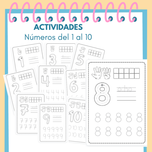 Flash cards + actividades + llaveros números del 1 al 10 – matemática