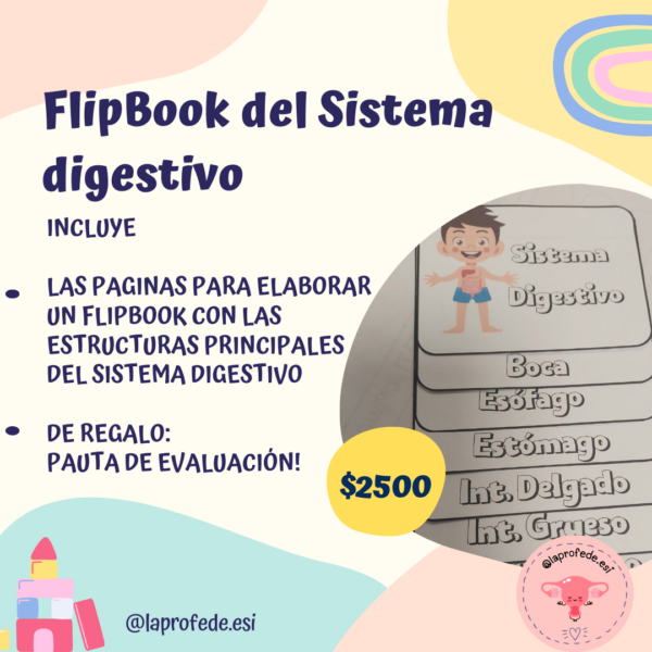 Este Flipbook del sistema digestivo, es una guía visual ideal para que estudiantes puedan conocer el recorrido de los nutrientes, puedes agregar imágenes y/o definiciones de proceso y/o estructuras.