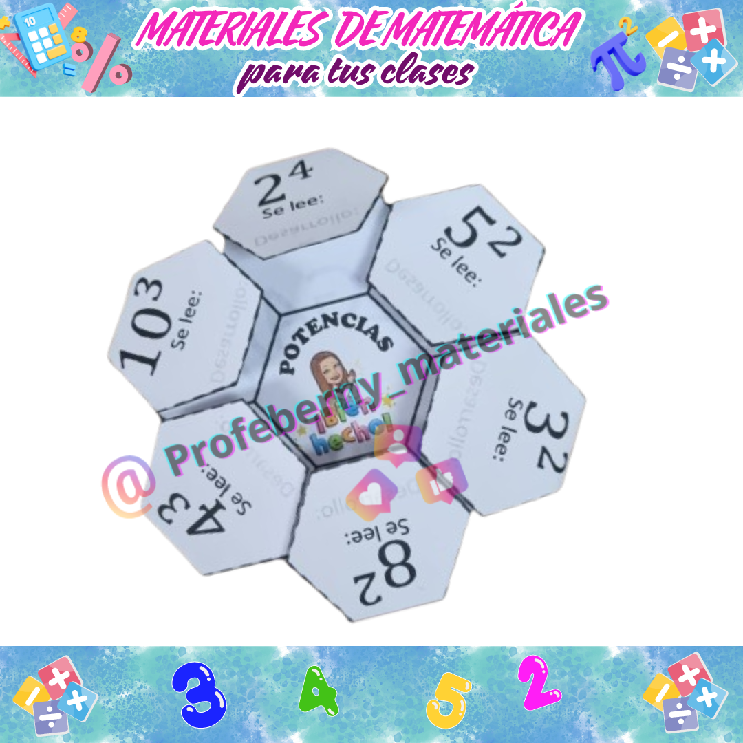 Ficha para cortar y armar, calcular potencias, expresión como factores iterados y lectura.