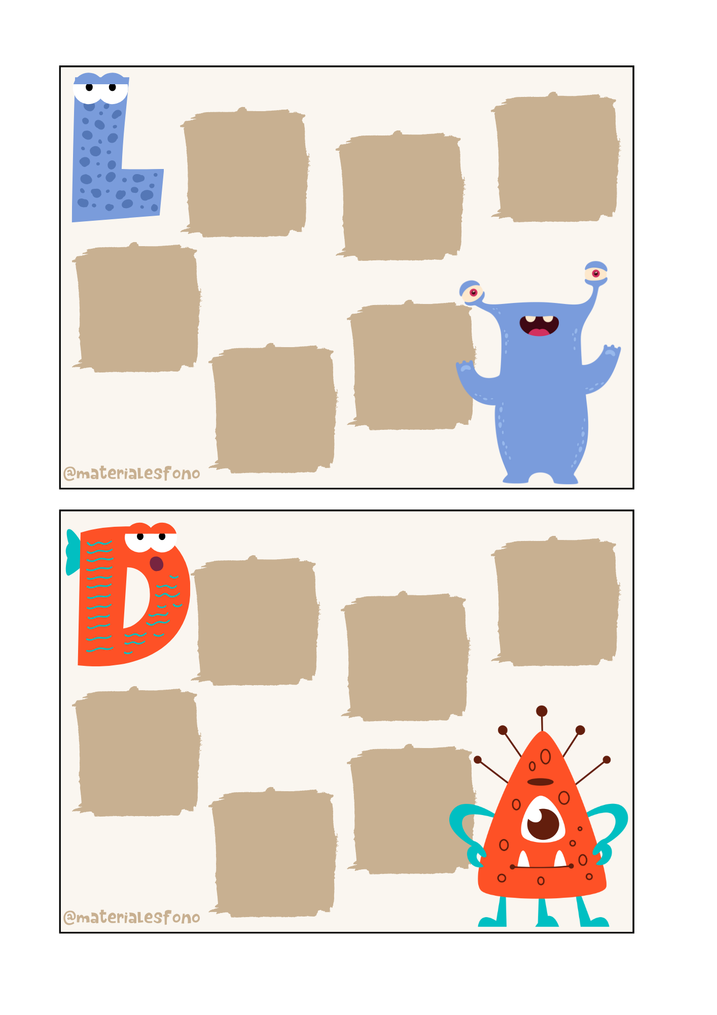 - 3 tableros para clasificar imágenes (uno por cada fonema)