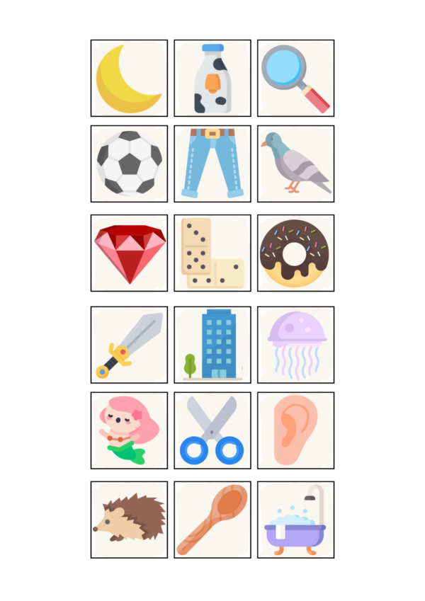 - Un dominó con 19 fichas, que contiene imágenes con LRD mezcladas, para trabajar los tres fonemas al mismo tiempo.