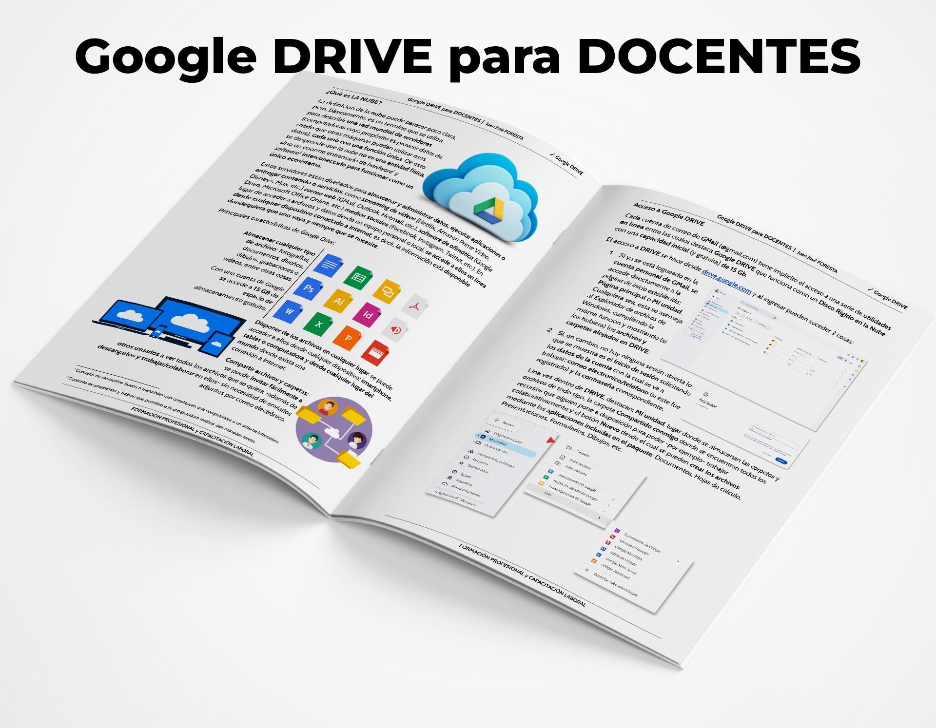 Esta muestra de Google DRIVE para DOCENTES comienza explicando ¿Qué es LA NUBE? y sus principales características, cómo acceder a DRIVE a partir de una cuenta de correo de GMail e incluye los 2 primeros ejercicios: creación de carpetas y administración de arhivos.