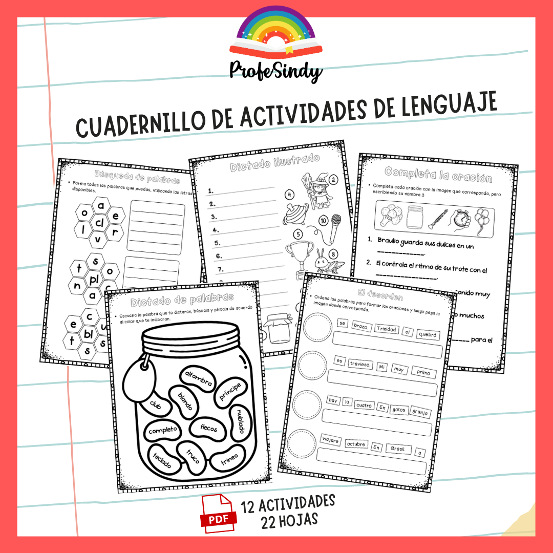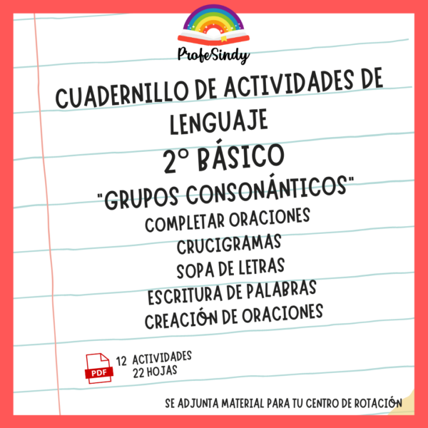 Cuadernillo de lenguaje con diversas actividades para trabajar la consolidación de los grupos consonánticos.