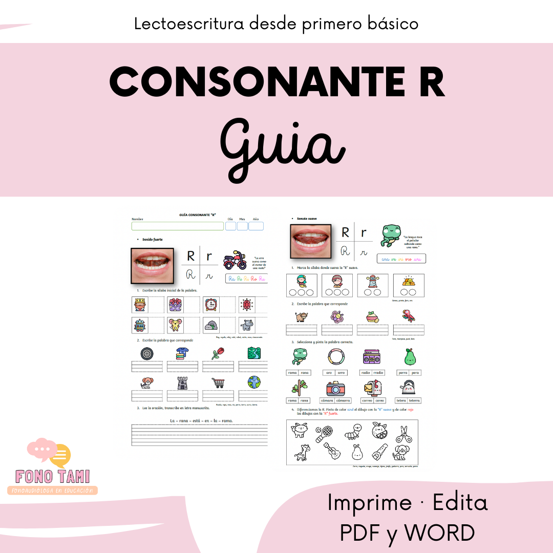 – Apoyo con el punto articulatorio del fonema “R”, como vibrante simple y vibrante múltiple