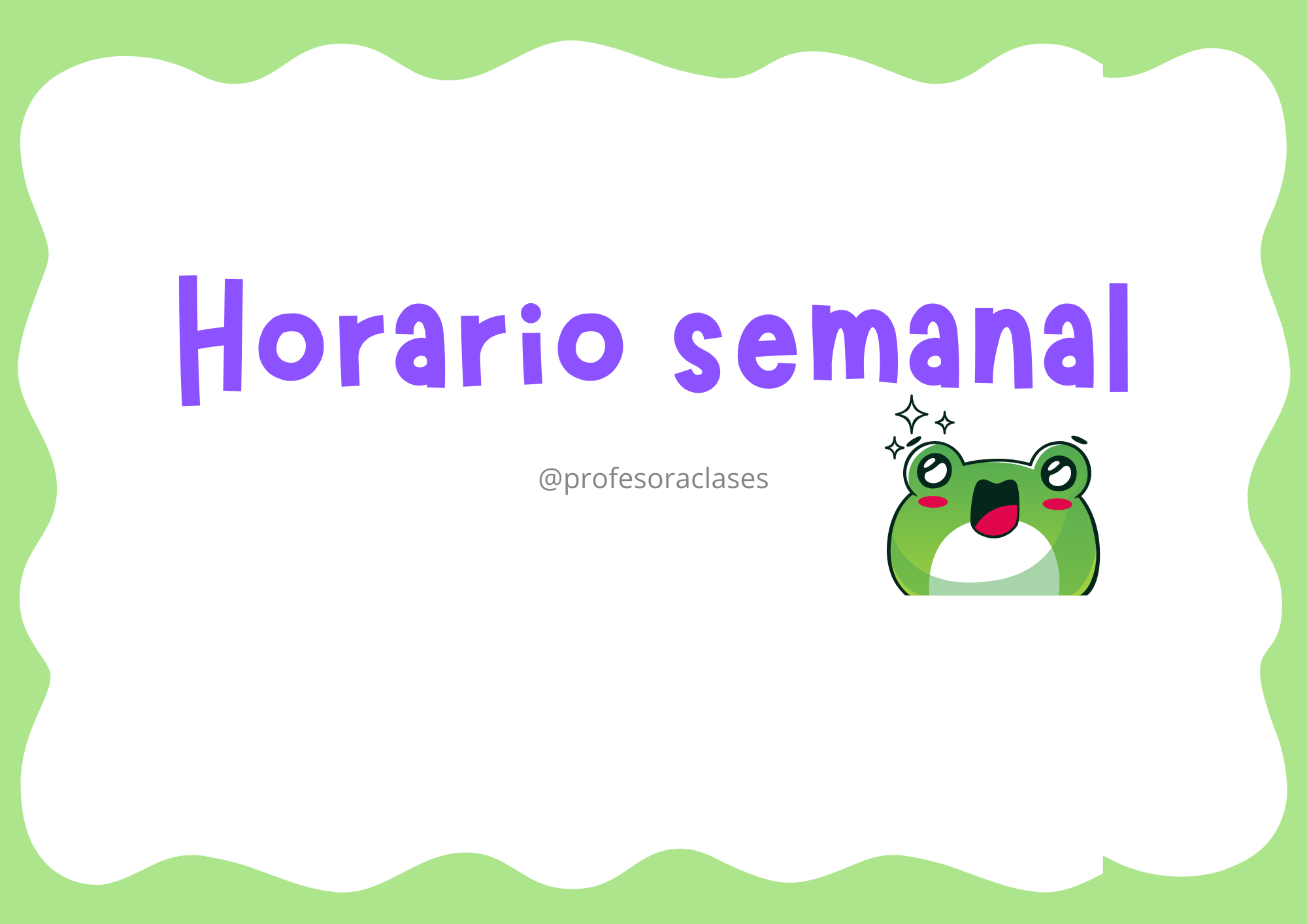 Este horario semanal es una plantilla colorida y organizada con espacios para cada día de la semana y horas específicas. Incluye diseños de rana y una sección de notas para apuntes adicionales. Versión del archivo .pdf
