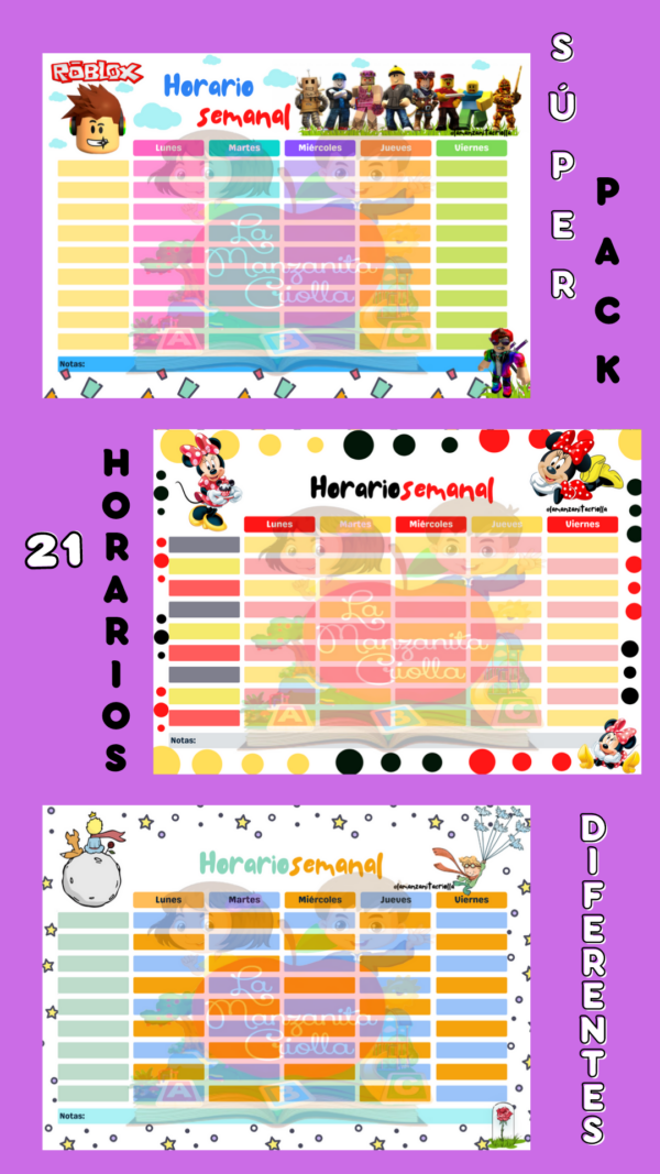 Horarios escolares con diferentes motivos
