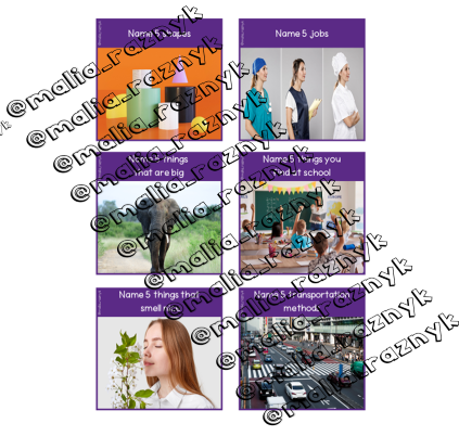 Name 5 game es un juego super divertido donde los alumnos tienen que pensar en 5 objetos que pertenezcan a categoría que aparece en cada tarjeta.