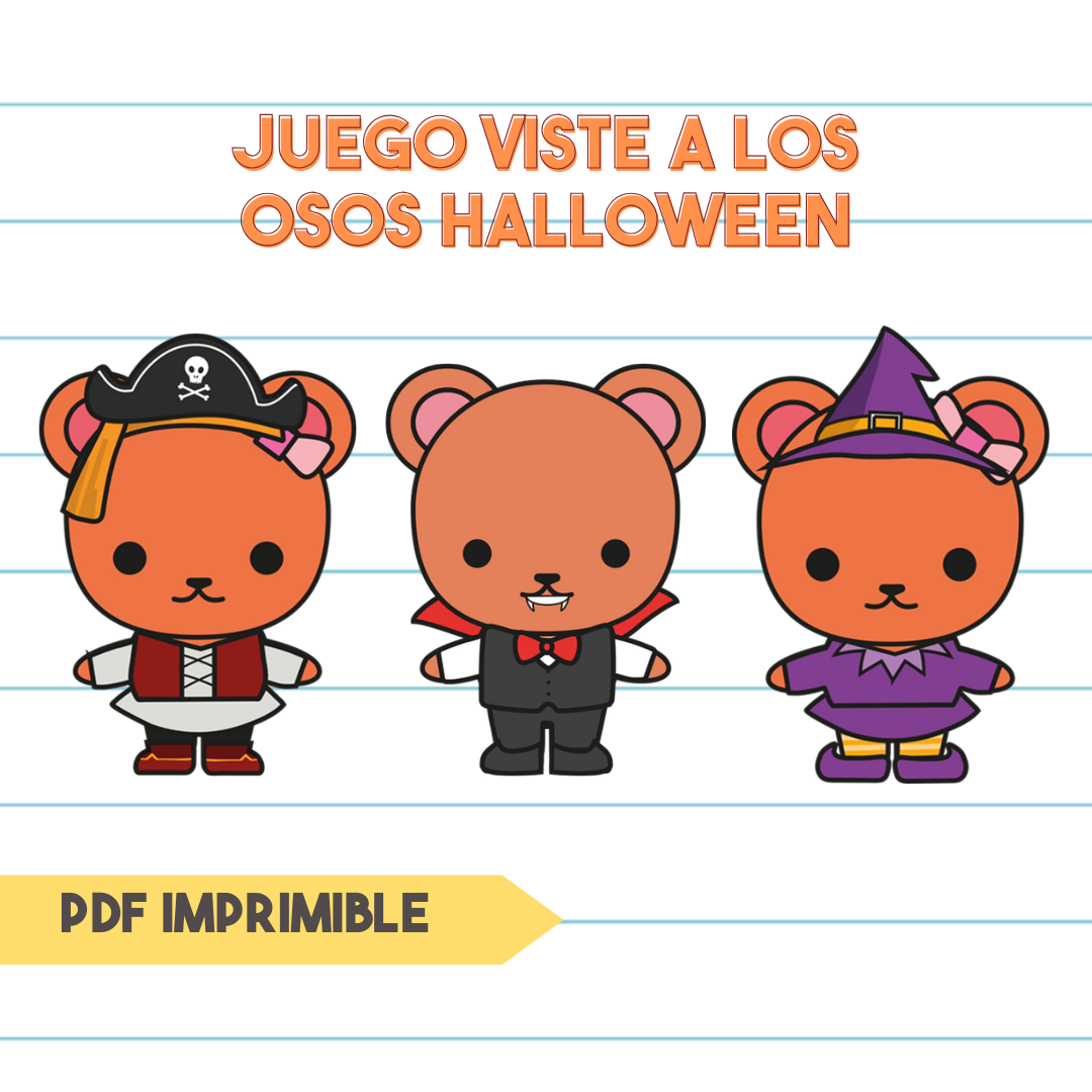 Juego imprimible para vestir a los Ositos con disfraces de Halloween.