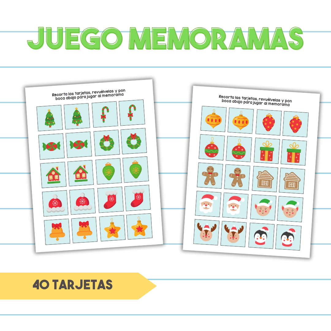 40 tarjetas para recortar y jugar al memorice (memorama o juego de memoria) con temática navideña