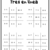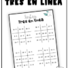 Juego en parejas en el que estudiantes deben resolver restas sin reagrupación para ganar el juego “Tres en línea”.