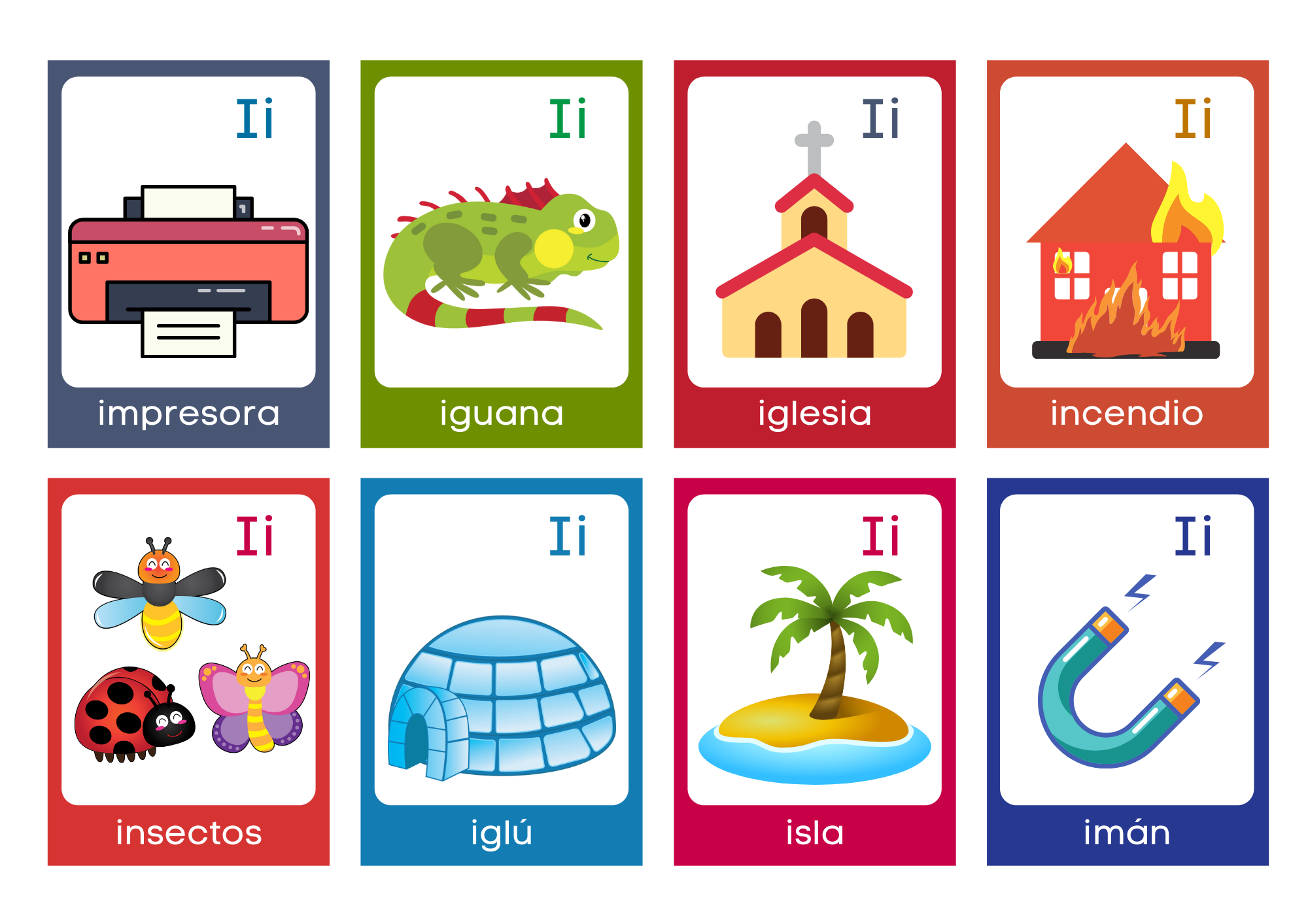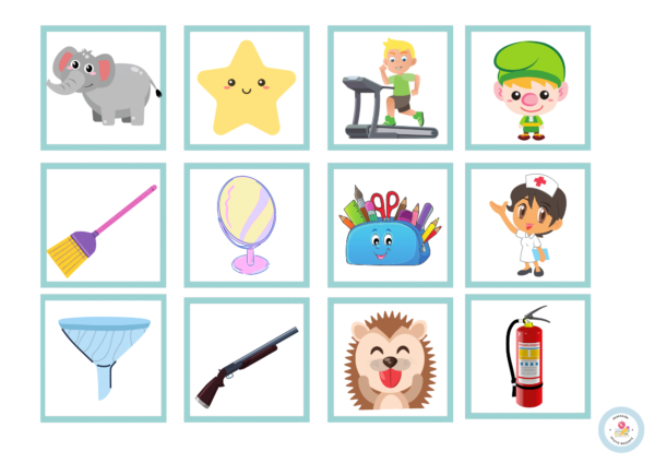 b. 10 páginas con tarjetas recortables de sonido inicial