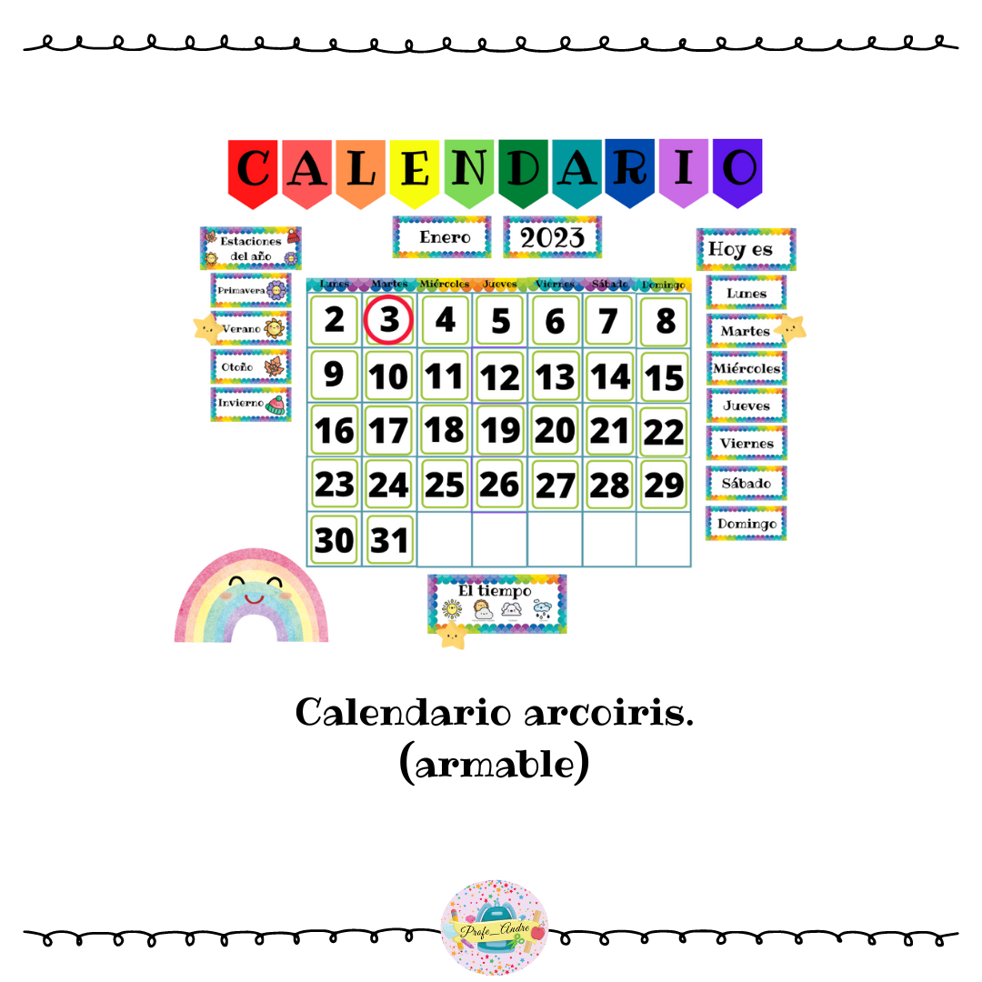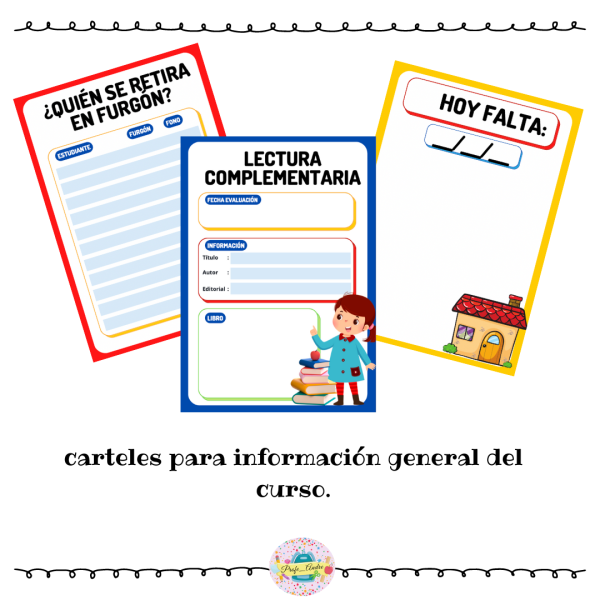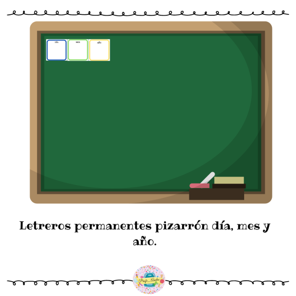 Kit de inicio año escolar, con material de bienvenida e indispensables para la sala de clases como el calendario, rótulos, etiquetas para mesas entre otros.