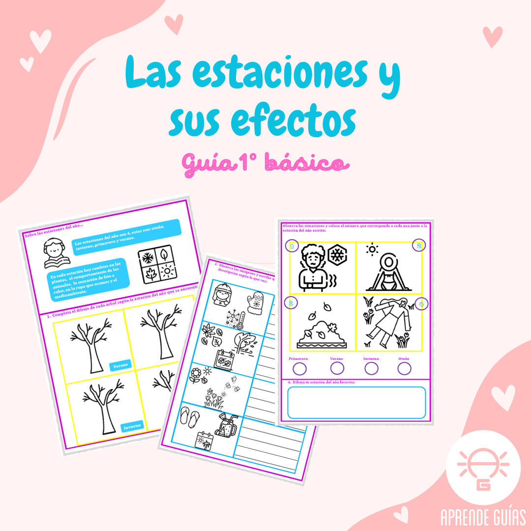 Guía de aprendizaje de ciencias naturales con 7 actividades desarrollada para niños y niñas que cursan 1° básico en base a los objetivos de aprendizaje del MINEDUC en los planes y programas. OA 12 “Describir y comunicar los cambios del ciclo de las estaciones y sus efectos en los seres vivos y el ambiente”